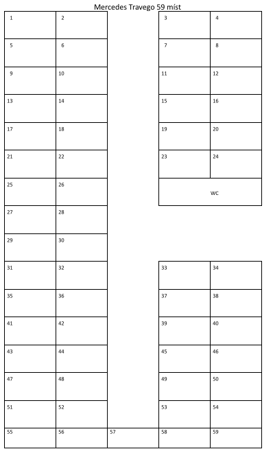 Pokud cestujete s naší společností na dovolenou nebo zájezd naším klimatizovaným autobusem, můžete si vybrat místo k sezení. V pravé části obrazovky si prohlédněte pevně daný zasedací pořádek, pokud se Vám nějaké místo k sezení bude zdát nejlepší právě pro Vás, neváhejte nás kontaktovat a zamluvit si jej:-)